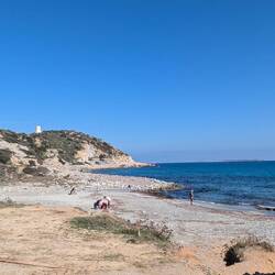 Von Torre delle Stelle, dieser ruhigen, stillen Bucht, wo wir schon seit Tagen stehen, fahre ich an fantastischer Küste mit vielen Stränden und tollen Ausblicken entlang zur Spiaggia di CapoMeer informatie