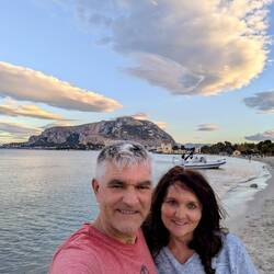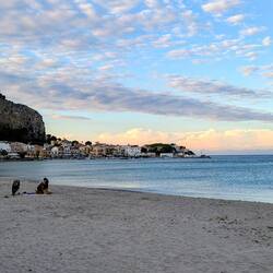 Heute gehen wir an unserem Stellplatz 2 km vor Mondello, erstmal baden. Nachmittags fahren wir nach Mondello und spazieren an der schönen Strandpromenade entlang.