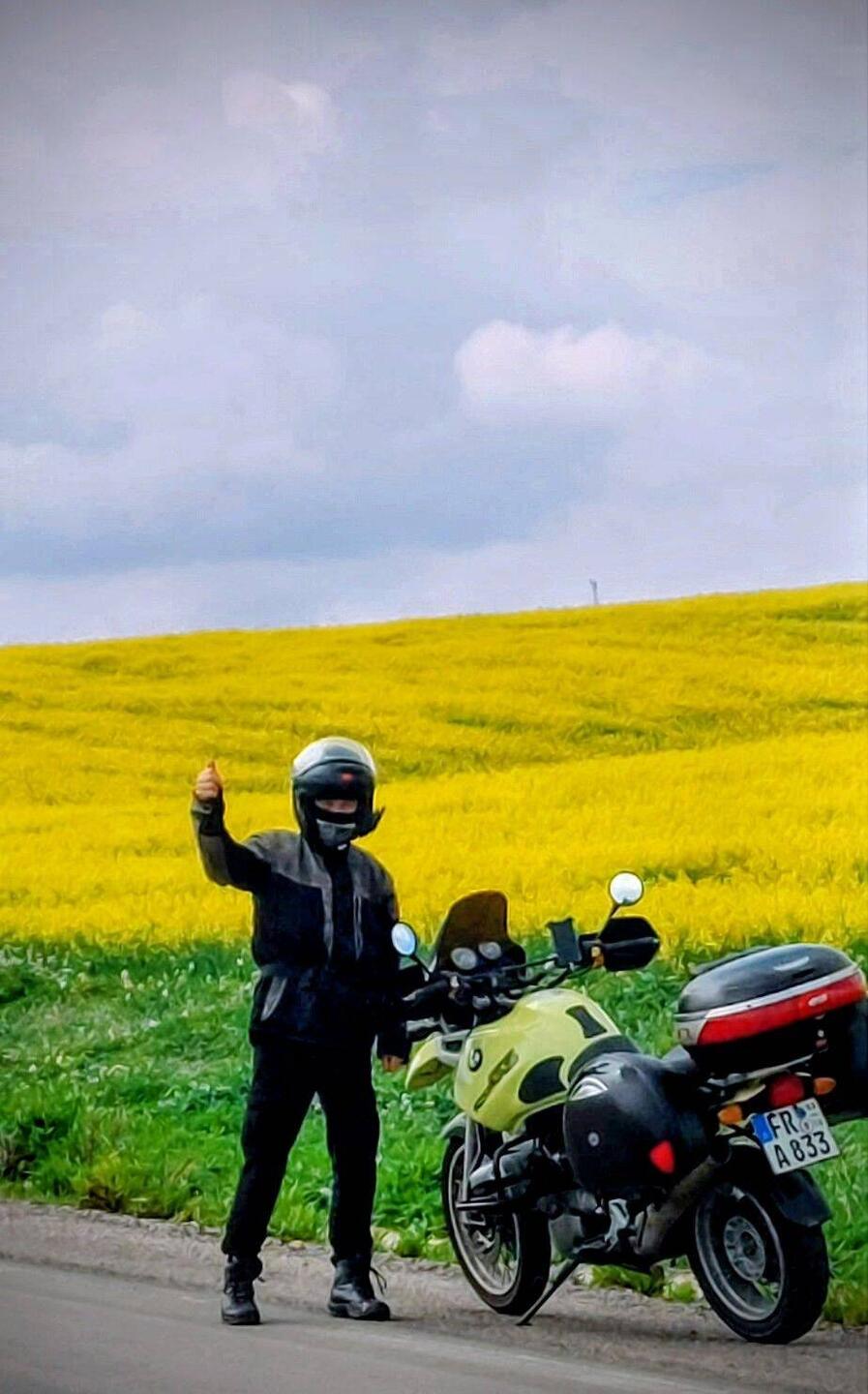 Heute früh um 7 Uhr fahren wir in Umkirch (Freiburg) bei 0 Grad los, die Sonne kommt zwar, aber es ist natürlich trotzdem für's Mottorradfahren ziemlich kalt.