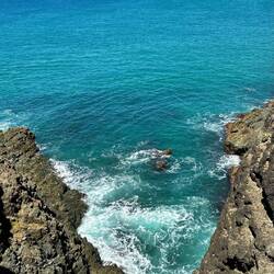 Am Tag darauf habe ich mit Joel und Franka den Coastal Walk gemacht, den Lina mir empfohlen hatte. Der Weg endet an natürlichen Pools, und als wir die ersten Delfine sahen, meinte ich nur: "Jetzt fehlen nur noch Wale!" Kaum ausgesprochen, tauchten tatsächlich zwei Wale auf und haben uns eine richtige Show geliefert.