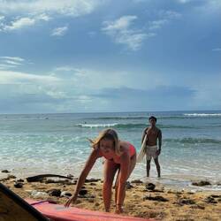 Als Franka und ich mal wieder am Spit gekocht haben, beobachteten wir zwei Mädels, die ununterbrochen Fotos machten. Plötzlich kam eine von ihnen rüber und fragte, ob wir als Models für sie arbeiten könnten – inklusive kostenloser Badeanzüge. So wurden dann massenhaft Bilder und Videos von uns gemacht. Eines davon, in dem ich (sehr peinlich) unseren Van vorstelle, ist sogar viral gegangen und hat über 110.000 Aufrufe bekommen. Fun Fact: Die Badeanzüge kosten 120 Dollar, die Bikinis 150 Dollar. Verrückt!Læs mere