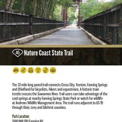 10 State Parks - 38 Madison Blue Spring, 39 Suwannee River, 40 Stephen Foster Culture Center, 41 Big Shoals, 42 Lafayette Blue Springs, 43 Suwannee River Wilderness Trail, 44 PeacockLeggi altro