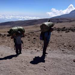 Die Guides singen und tanzen beim Aufstieg - für sie ein Spaß... Unglaublich!