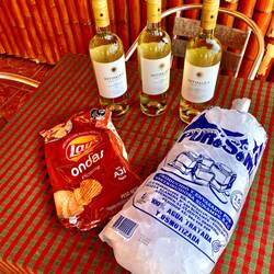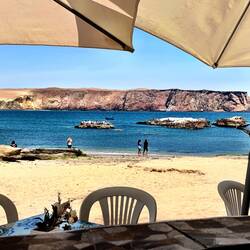 Entschädigt wurden wir dann aber mit einem traumhaften Mittagessen mit Blick auf eine wunderschöne Pazifik- Bucht, ich habe fangfrische Ceviche genossen, das ist eine Mischung von frischem rohen Fisch mit Zwiebeln und einer Zitronenmarinade - zöstlich 😋. Da die verpasste Dünenchallange doch sehr schmerzt, haben wir uns einfach noch drei Flaschen Weißwein und Eis zum kühlen besorgt, und auf der Terrasse mit Meerblick diesen Frust hinuntergespült…..