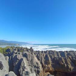 Heute im Artcafé in Greymouth gefrühstückt. Dann gings los nach Franz Josef. Die Fahrt war sehr Abwechslungsreich und wir wurden von der Sonne verwöhnt.