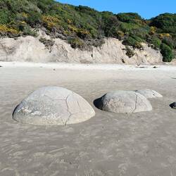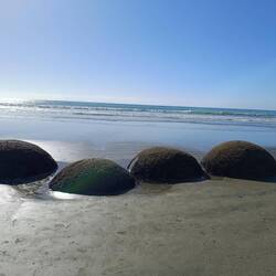 9.30 fuhren wir zuerst nach Hampden zu den Moreaki Boulders. Es war einfach nur traumhaft. Die Sonne, der Wind und das Meer, das war der beste Tagesstart.