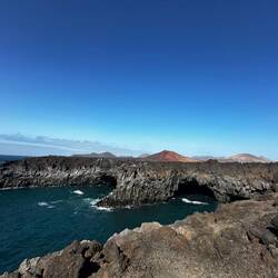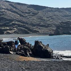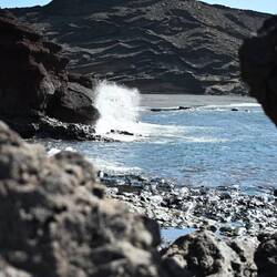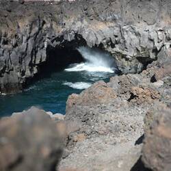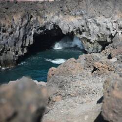 Nach dem Fotoshooting am Strand ging es weiter zu den Los Hervideros, einer Klippe, in der die Brandung in Höhlen einschlägt, was dann aussieht, als würde das Wasser kochen. Daher der Name derMeer informatie