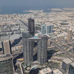 Sky Views mit dem Sky Walk und der Glasrutschbahn an der Aussenfassade im 53-igsten Stock.