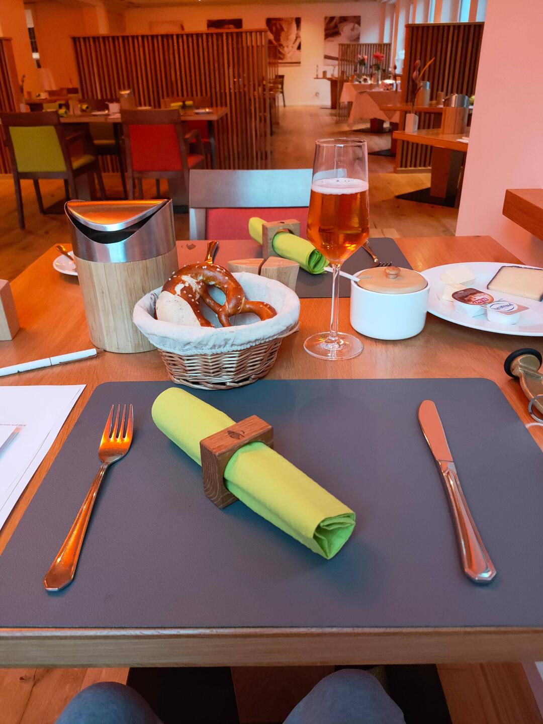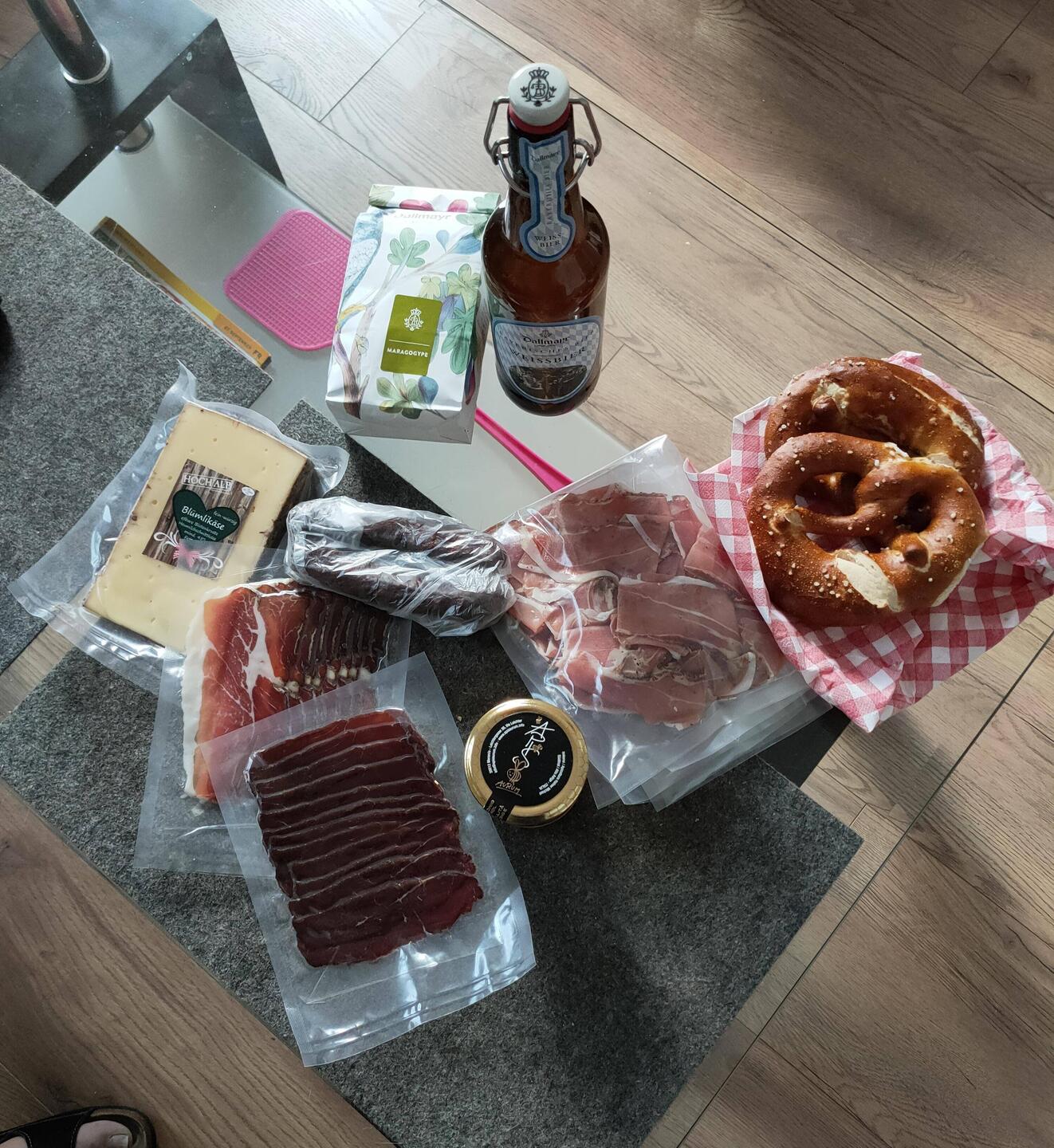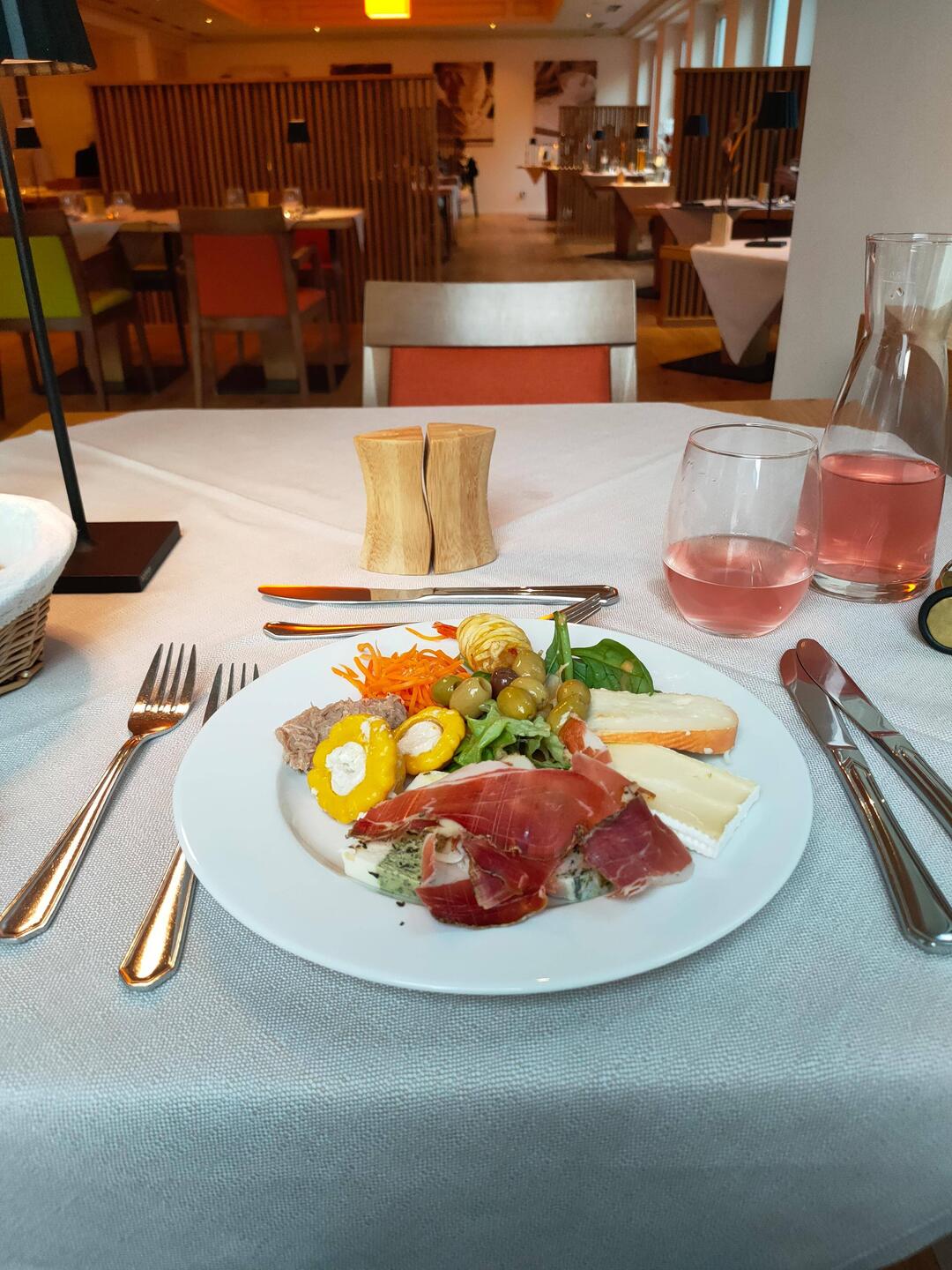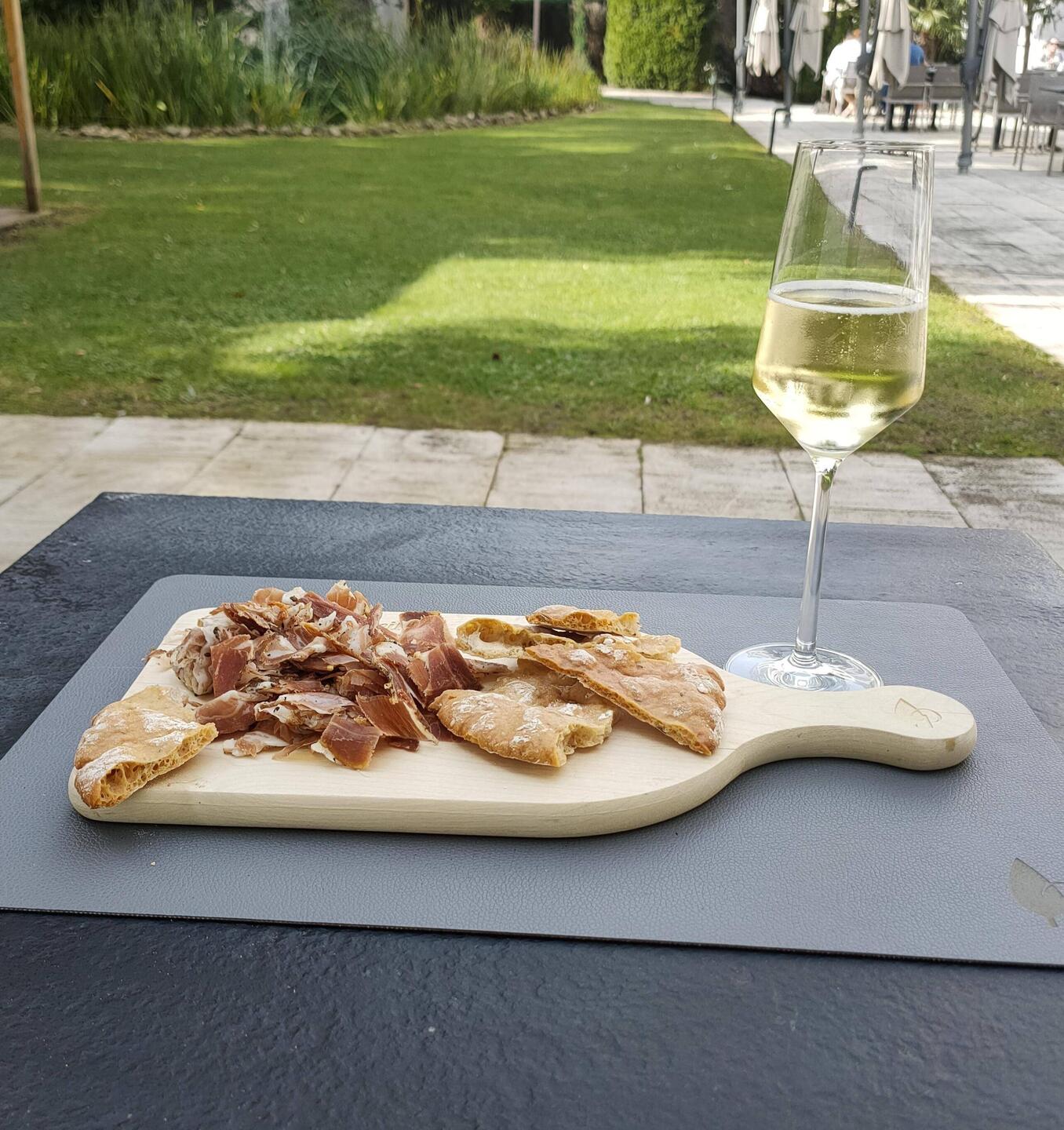 Ein kleines Willkommen im Das Parkhotel 🥂🍾 Allgäuer Speck und Schüttelbrot, dazu ein Gläschen alkoholfreier Prosecco