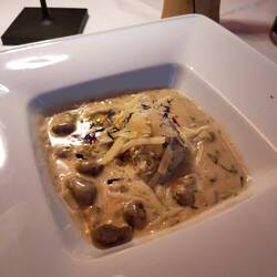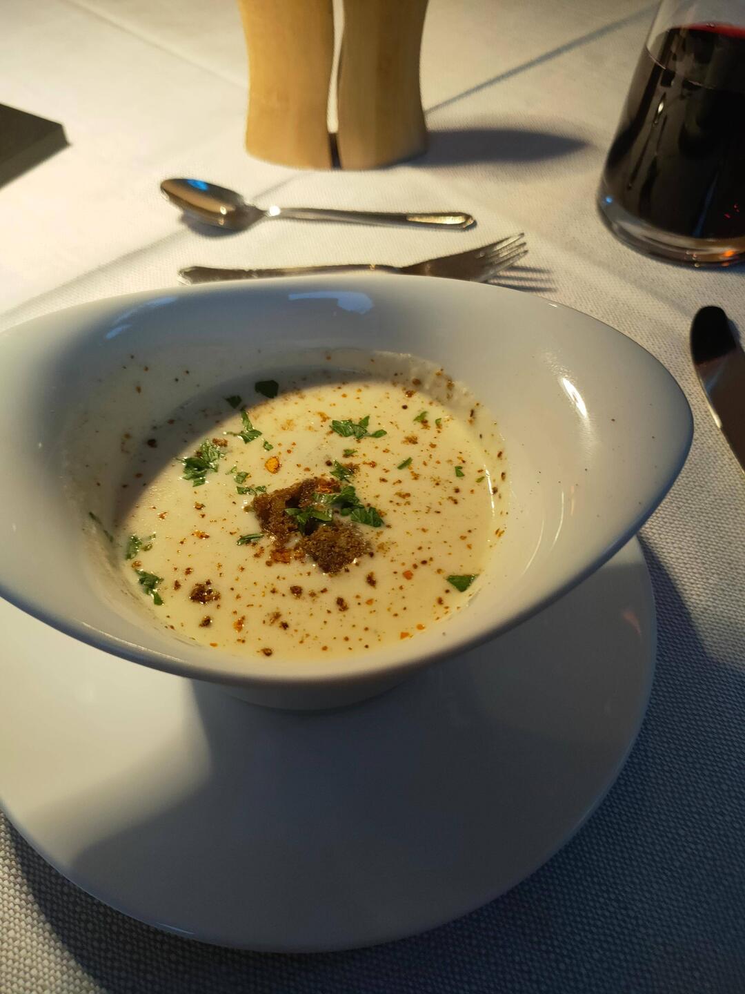 Allgäuer Käsesuppe, Roastbeef mit Morcheln, Kastaniencreme. Alles sehr, sehr lecker 😋
