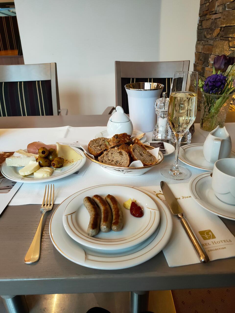 als Getränk alkoholfreier Hugo und zum Abschluss Rohmilchkäse