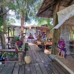 After spending a few hours at the beach, we decided to finally hop on the bike again and find some food. We eventually found this Esan styled restaurant where we ordered some Som Tam & Squid whileLæs mere