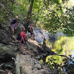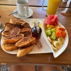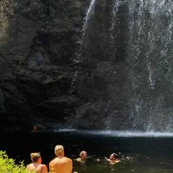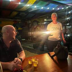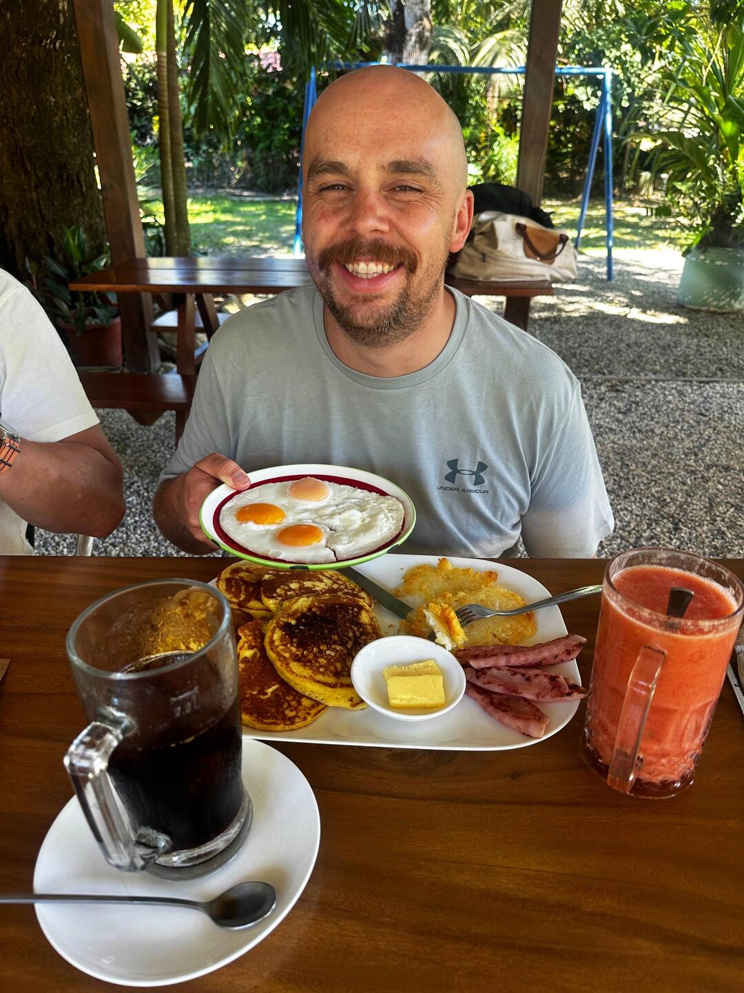 We headed out to a breakfast cafe called ‘The Bakery’ in Cabuya. Derry having birthday pancakes (they ran out of bacon so extra pancakes it was😂) and a pint of coffee. Dan obviously had French toast and Freya and Melissa shared a MASSIVE fruit platter. Once all sufficiently full we went for a waterfall adventure. The walk was not for the faint hearted, clambering over tree roots and jumping over river beds, in some places there was even ropes put in to help you along the way. We arrived at a beautiful fresh waterfall were we all had a long dip, Derry and Dan jumped off plenty of the rocks and even Freya jumped off one with Derry’s encouragement. After a lot of splashing around (mainly from Derry) and a bit of sunbathing we headed back for a beer.