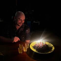We headed back for a quick shower and surprised Derry with a cake (we had picked up earlier) and a happy birthday sing song. There nearly was no cake however as Dan tripped as he came round the corner and nearly splattered the whole thing up the wall! Very entertaining!