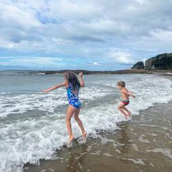 What a great stop at Conway Beach! We had lots of fun at the splash park, in the pool and jumping on the big pillow. We visited Cedar Creek falls and went crabbing on Wilson’s Beach. Addie did herBaca lagi