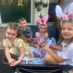 We started our Easter with matching pjs and toys and then awoke to lots of eggs from the Easter bunny. Then bunny Bree was the most amazing host. We had the best Easter Sunday with tractor rides,Baca lagi