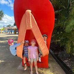 We had to visit the Big banana again. The kids had a ball going on the toboggan with us and we even found pins for their pin books. We went for ice creams at the jetty and just walked until we hitBaca lagi