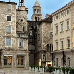 Kaum haben wir das Gepäck abgeladen, gehen wir auf Erkundungstour. Wir spazieren durch die hübschen, verwinkelten Gassen von Split, wobei wir an zahllosen Restaurants, Gelaterien und kleinen Shops vorbeikommen.
