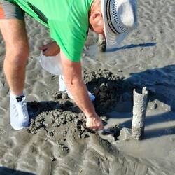 Breakfast at hotel then Rob had swim. Got collected 9am in Xuns car. Taken to local markets. Bought cherries and NZ Jazz apples. To Pretties place. She came with us to hotpot place for lunch. Went to beach to dig for clams with Hua and son Du. Collected in bag. Drink and cooked chowder and cooked oysters. Back to walk around Puritan Palace temple. Sunset then dinner across road with Cherry, Jank, Shenshe and Long long too. Shared meal. Back to Pretties for presents from us and photos. Stayed night there.Lue lisää