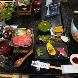 Drei Züge brachten uns nach Odawara wo wir das ‚Castle‘ anschauten. Völlig durchnässt dann mit der Bergbahn hoch nach Hakone Gora. Super Essen mit Wagyu Beef 🥰