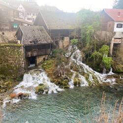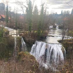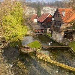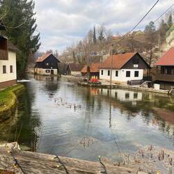 Beim malerischen Dorf Rastoke fliesst die Slunjčica in vielen Kaskaden und Wasserfällen in die Korana und treibt/trieb Wassermühlen an.