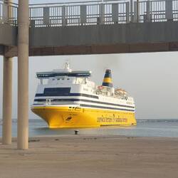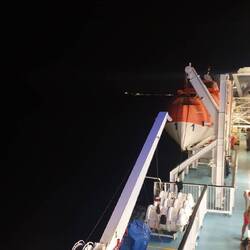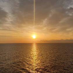 Irgendwann legte dann auch endlich unsere Fähre mit reichlich Verspätung an und das Ausladen begann. Nach weiteren langen Minuten konnten wir dann endlich am Board mit über einer Stunde Verspätung. Alles klappte dann problemlos, ich fand meine Kabine und sprang direkt unter die Dusche und begab mich dann ins Restaurant für ein Dessert. Die Nacht war sehr ruhig, ich schlief wunderbar, musste jedoch die Kabine um 7:00 Uhr wieder freigeben zum Putzen. So konnte ich jedoch in aller Ruhe Frühstücken und den Sonnenaufgang an Deck beobachten.