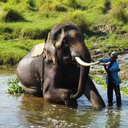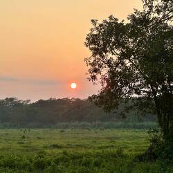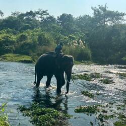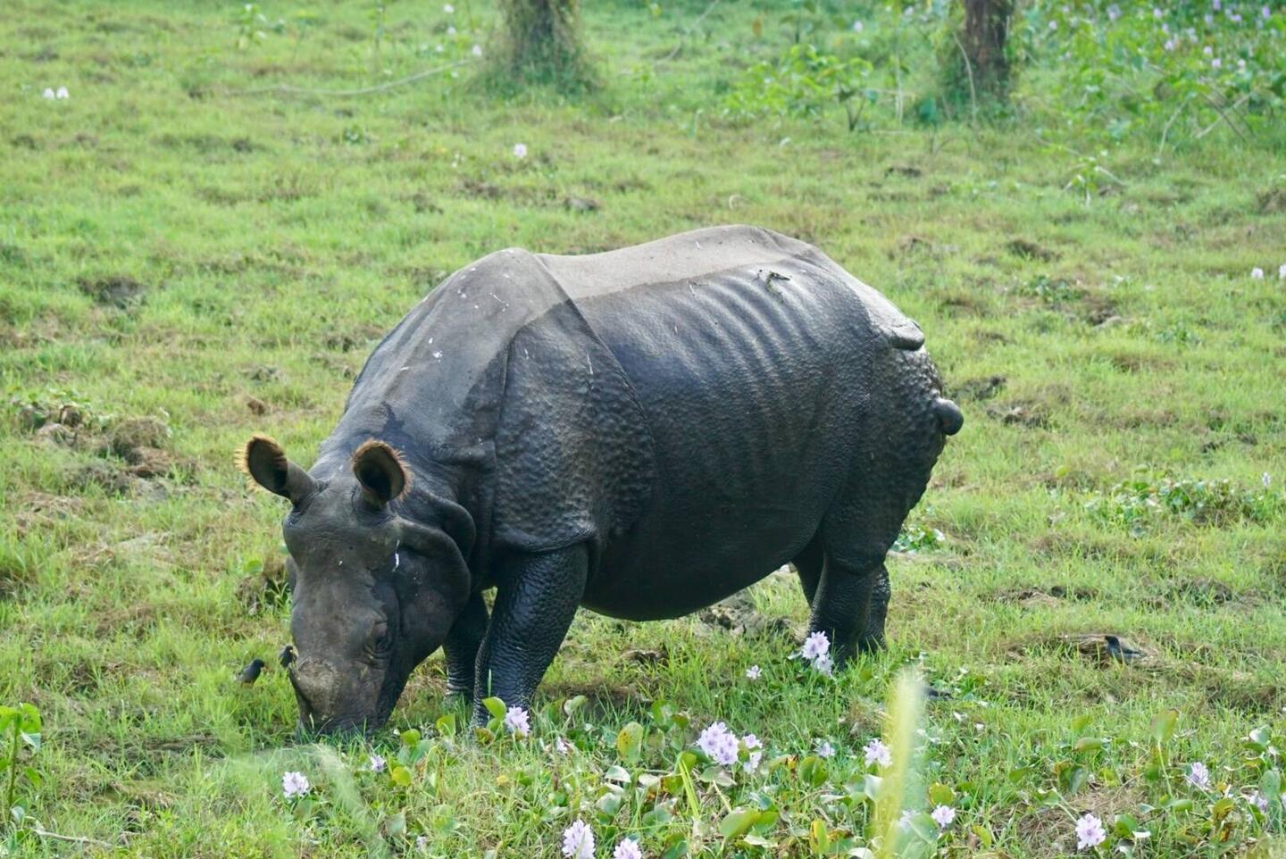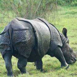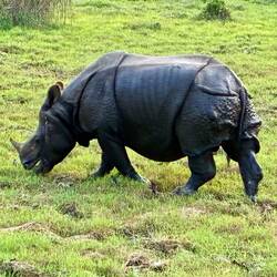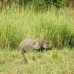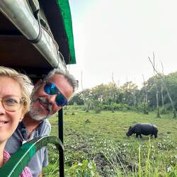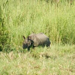 Zweiter Anlauf in einem anderen Teil des Nationalparks mit etwas mehr Glück. Tatsächlich ein Panzernashorn in Selfie-Position.