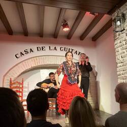 On our second last day we booked tickets to see a Flamenco performance and it was amazing. There were three people on the stage. A dancer, singer and a guitar player. Each one of them took their talent to the extreme. The dancer was hitting the ground so hard with her feet that I’m surprised she didn’t break an ankle. The singer / clapper guy was singing so loud and clapping so hard too. And the guitarist was playing super fast. I think I liked Seville better than Granada. It seemed more relaxed and clean. They had wider streets, no cars in the old town and a bunch of street entertainment, making it the perfect city for me.Les mer