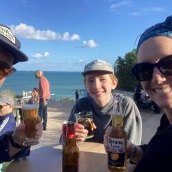 On day 2 Dad went out and rented a surf board ( because there were waves around that area ) and went out to do some surfing and me Mum and Jemilla just sat on the beach and waited.
