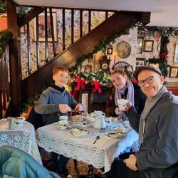 On our first day in London we met up with Mum and Dad’s friends from Hong Kong. They took us out for Lunch and to their school Christmas market, they said it was very modern but it definitely wasn’t. It looked like a proper London boarding school. After all it was called kings college. After that we went out for Lunch with them to this really small pub and got really full. The pub had a very London vibe about it and you were allowed to bring dogs inside. We said goodbye and then at night we went into central London to go to a service at Westminster Abbey, they let us sit in the seats where all the royals sit for the coronations which was awesome and the choir was very good to listen to. Plus we got to see Big Ben lit up at night.