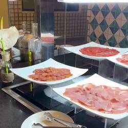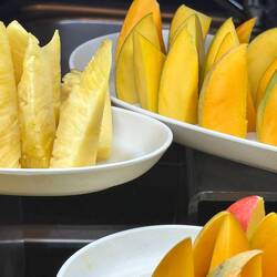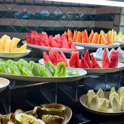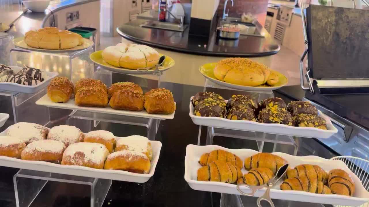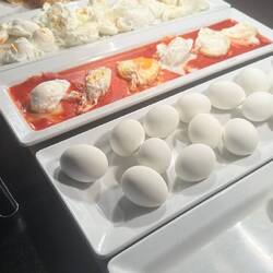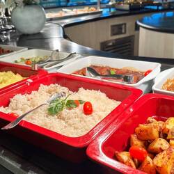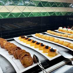Heute waren wir bei Zeiten am Abendessen. Das Buffet war so gut wie unberührt….