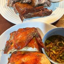 Danach Abendessen, heute gab es ein 1/2 Poulet für mich und eine halbe Ente für Schatzi, auf die bestelltenLeggi altro