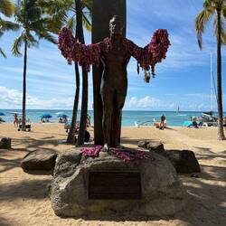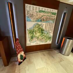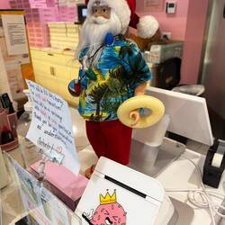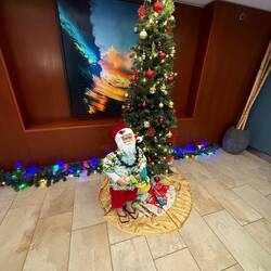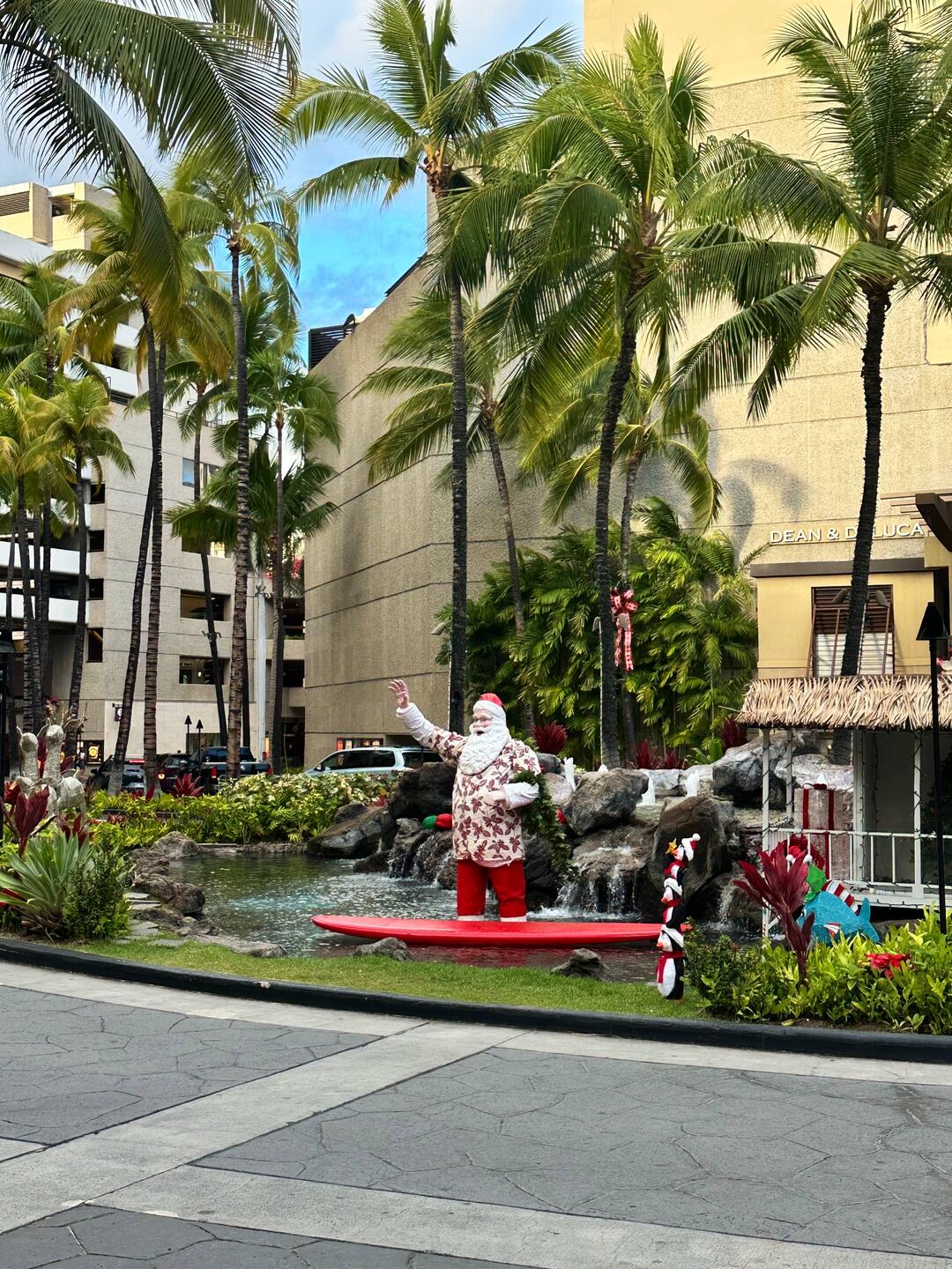 All the surfing Santa’s around the city. Including in our hotel lobby. Had to include the gnome for Eric.