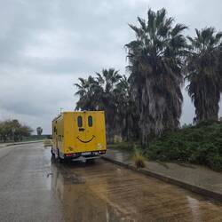 Hier stehen wir sicher trotz ziemlichem Regen, der uns fast den ganzen Tag begleitet hat.