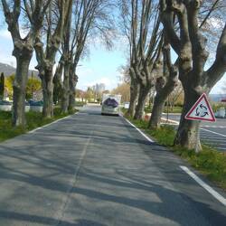 Auf den schmalen Straßen, durch die Bäume, war es schon manchmal recht eng wenn ein LKW entgegen kam, durch die Böen warLes mer
