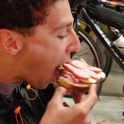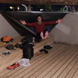 Après une bonne baignade et 1kg de pâte en guise de dernier repas avant le festival, on partage une bière avec Markus qui est de retour. C'est un habitué des longues distances avec notamment la transcontinental à son actif, course de 4 000 km réalisée en 15 jours (soit 300 km par jour avec 4h de sommeil). On est fasciné par cette expérience et avons plein de questions.