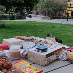 On continue 8 km de plus pour accéder à un supermarché et faire notre pause de midi. Nous sommes à 140 km, c'est bon signe pour l'objectif de la journée. Armand se charge des courses et il fait la classique cycliste affamé qui consiste à prendre tous les produits trouvés. On a donc une dizaine de kg de nourriture, ce qui est beaucoup trop. On ne mange pas tout mais quand même beaucoup trop. Après une grosse heure de pause, on repart et comme pressenti, je regrette l'excès de nourriture d'entrée de jeu. Surtout que nous sommes dans des côtes assez raide sous la chaleur, j'ai l'impression de suffoquer. En revanche, les paysages sont magnifiques, on est en moyenne montagne et vraiment surpris de la diversité que nous offre l'Allemagne depuis le début.