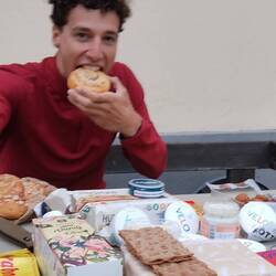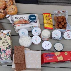 Au bout de 120km la faim commence à se faire sentir fortement, je décide donc de m’arrêter et je trouve une boulangerie à proximité de mon chemin. Les spécialités sont nombreuses et je me lance à prendre des choses dont je ne suis pas sûr du résultat 🫣 (Finalement c’était très bon !)