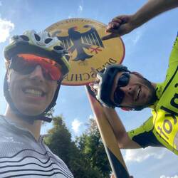 On a eu la sensation de pas beaucoup avancer ce matin mais ce n'était que le début. Tout de suite après le repas, on part pour une grosse trentaine de km où nous n'aurons pas une seule bonne route et majoritairement des chemins gravel ou même VTT parfois. C'est l'enfer et il nous faudra proche de 2h pour faire 40 km. C'est épuisant parce que les montées sont très raides et les descentes nos vélos sont secoués dans tous les sens. Bien que ça soit beau, on est content de repasser la frontière Allemande qui signe le retour de belles pistes cyclables et routes pratiquables.