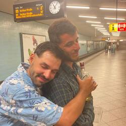 Ça fait maintenant deux jours que je suis à Prague avec mon amoureuse qui m'a rejoint, et nous sommes tout content d'attendre Armand et Olivier au petit festival sur une île de la Vltava. Après nos retrouvailles à la bière et aux frites, nous rejoignons l'auberge, qui est en fait une école (en vacances scolaires) avec des matelas disposés dans les salles de classe. Le personnel est composé de jeunes en job d'été, les client•es sont en fait toutes et tous des jeunes qui voyagent, l'ambiance est trop cool. Bien que nos aventuriers cyclistes arrivent tard, nous sommes bien motivé•es pour sortir ce soir. Un bout de Kebab et quelques bières de passées, et nous revoilà dans une soirée techno, underground une fois de plus, mais cette fois pour de vrai car c'est dans une cave. Nous ne sommes pas nombreux•ses pour un samedi soir d'août, parfois même seul•es sur la piste, mais on tape du pied à en faire s'écrouler les murs, c'est génial.