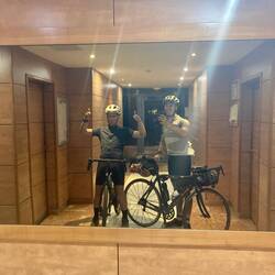 Pour garder les habitudes avec Armand, on entreprend un départ plus que tardif à presque 16h. Mais ce départ tardif est dû à un entretien méticuleux des vélos. En effet, j'avais besoin de nettoyer tout mon vélo dû à la saleté accumulée depuis le début. De plus, j'ai fait la dernière étape seulement sur le petit plateau et je devais aussi régler ça.