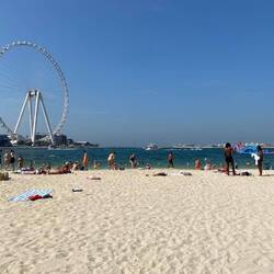 Wir haben am JBR Strand entspannt, welcher im Stadtteil Dubai Marina liegt. Entlang des Strandes zieht sich eine rund 7 km lange Flaniermeile, umgeben von Hotelanlagen, Restaurants und Wohnhäusern.