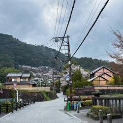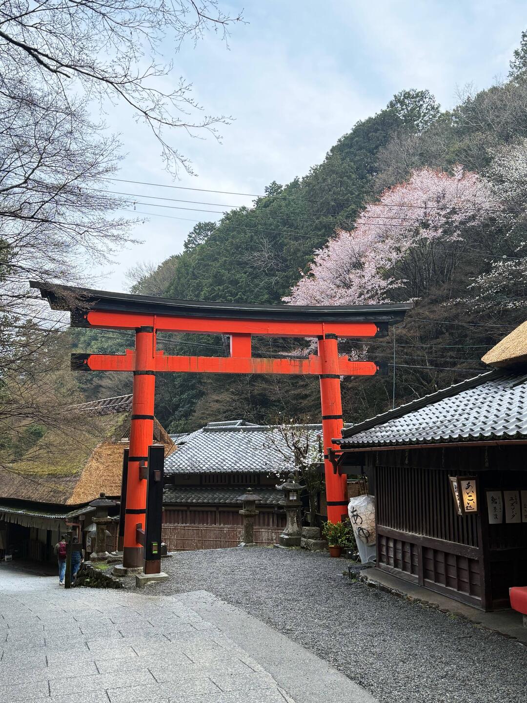 Am Fuße des Atago-Berges, unweit von Adashino Nenbutsu-ji, markiert ein leuchtend rotes Torii den Beginn des Weges zum Atago Shrine (Kyoto).