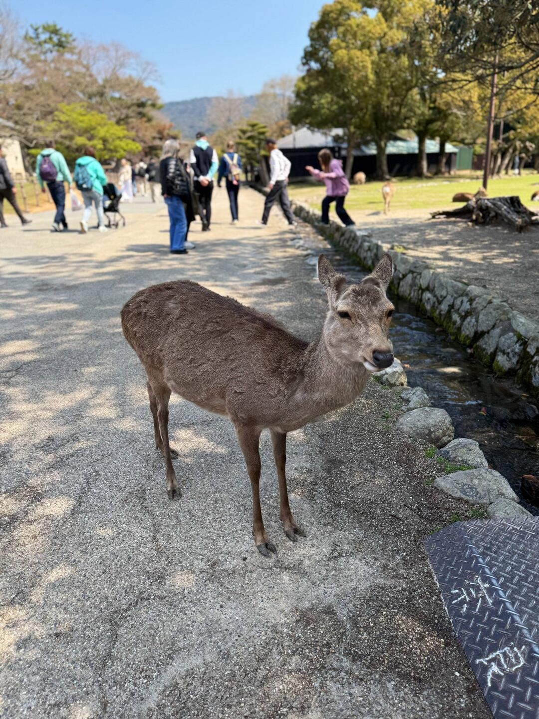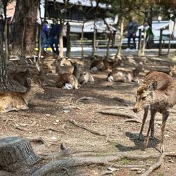 In Nara waren wir besonders von den weitläufigen Parkanlagen begeistert. Überall begegneten uns die frei herumlaufenden Rehe, die hier als heilige Tiere gelten und erstaunlich zutraulich sind. Es machte großen Spaß, sie zu beobachten und ihnen ganz nah zu kommen. Sie verbeugten sich wirklich.