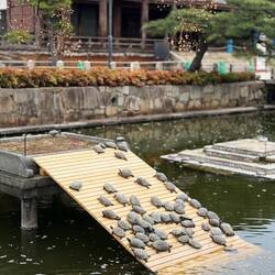 Im Teich ließen sich die Schildkröten in der Sonne brutzeln.