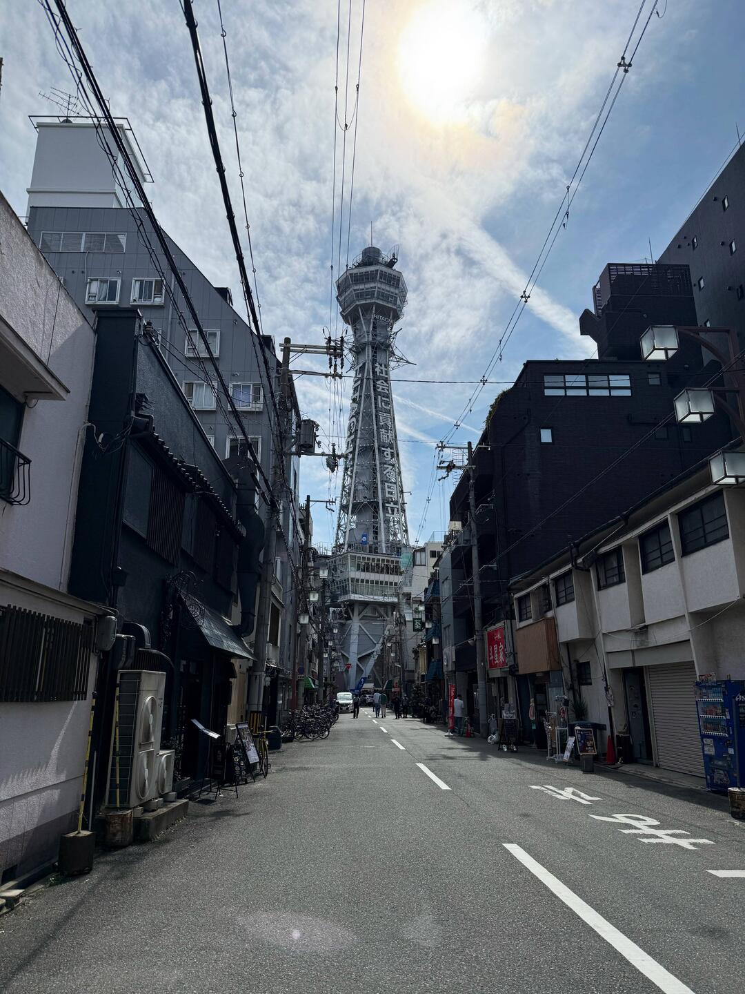 Im Shinsekai-Viertel gab es eins nach dem anderen zu entdecken: leuchtende Neonreklamen, alte Restaurants, Streetfood und zwischendurch ein paar Souvenirshops. Der Tsutenkaku Tower ragt mitten aus dem bunten, nostalgischen Viertel heraus.