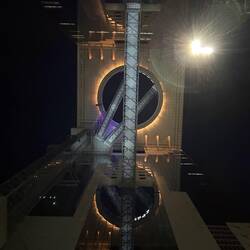 Das futuristische Gebäude ist vor allem für seine „Floating Garden Observatory“ bekannt – eine Aussichtsplattform, die zwei Türme miteinander verbindet. Der Weg führte nach oben mit Rolltreppen offene Glasröhren.