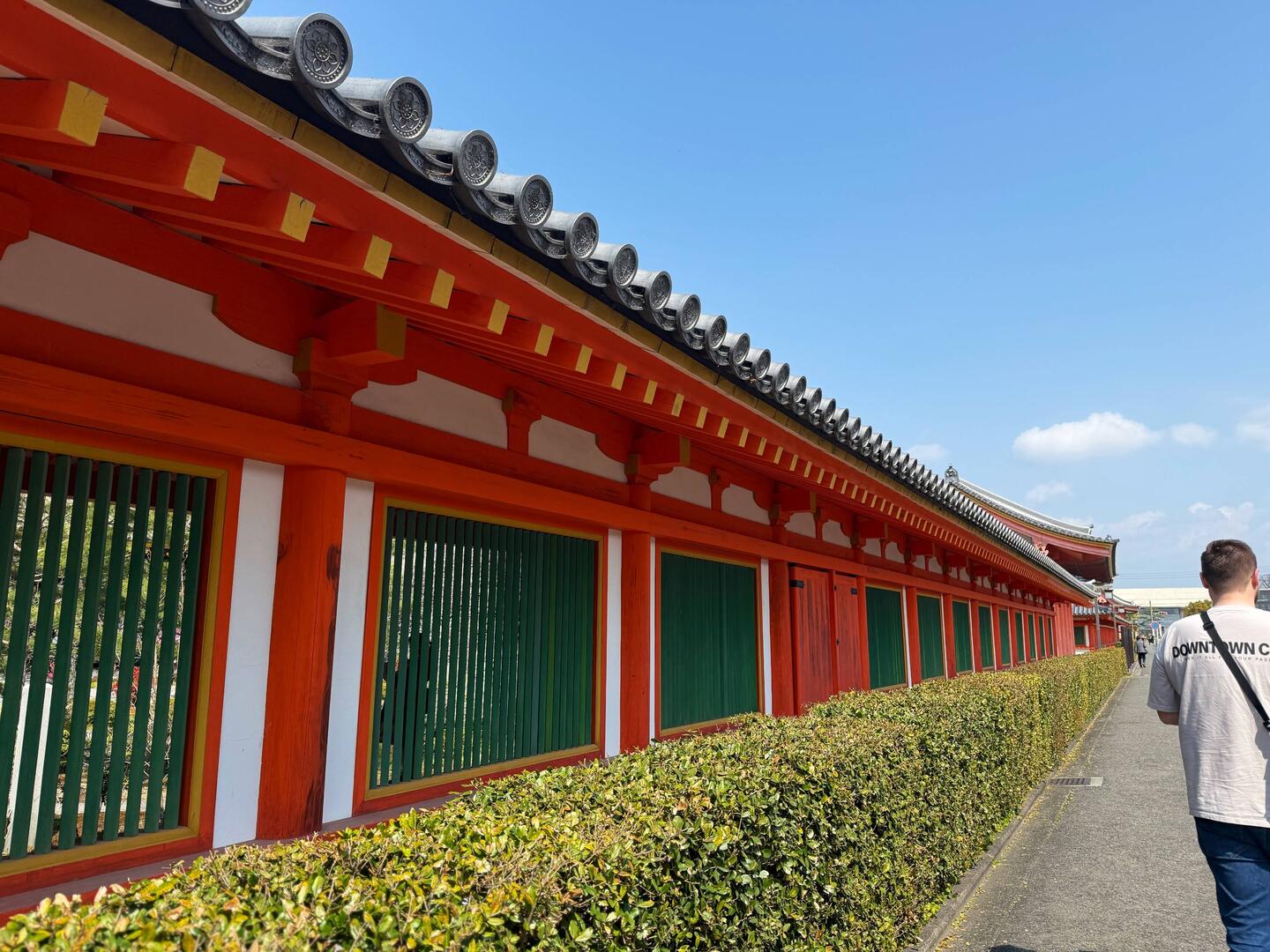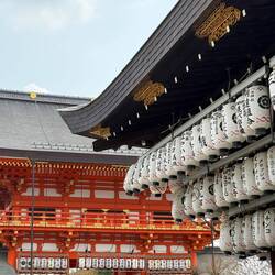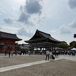 Das Tor führte uns direkt zum Yasaka-Schrein. Das Aushängeschild des Yasaka Schreins ist das rote Eingangstor namens ‚Romon‘.