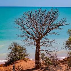 Today we traveled back the way we came yesterday along the Gibb River Road to Derby. We were about 10 km from the sealed section when our tyre sensor started beeping - alas, we suffered our 2ndMeer informatie
