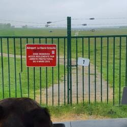 Wir versuchen einige aussichtsreiche Orte nahe der Küste anzufahren wie die Batterie de Dollemard, das Ancienne décharge en me de Dollemard, und den Aussichtspunkt bei Aquacaux, wo die Kiter zuhause sind. Bei Google Maps sind viel interessantere Bilder zu den Orten anzusehen, wir fahren auf der Seeseite des Flughafens entlang. Eine kleine Straße, auf der nur Radfahrer und Hundemenschen unterwegs sind. Am Ende der Landebahn warten Pferde auf die startenden Maschinen.